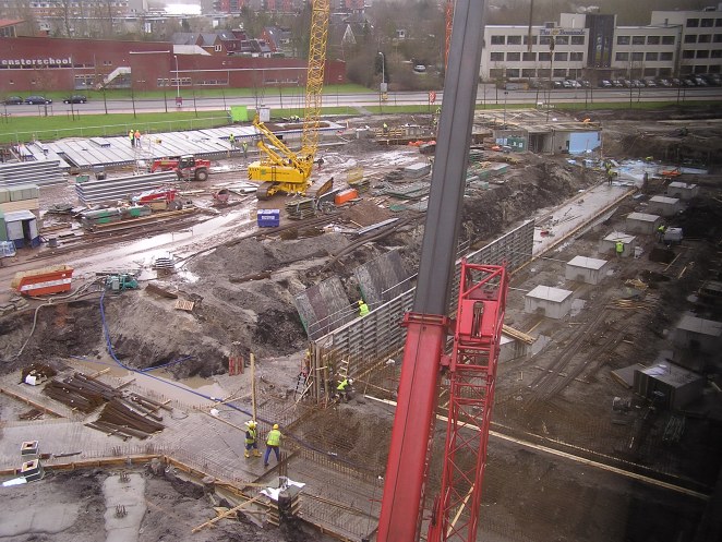 Deze week en de komende weken wordt op de bouwplaats gewerkt aan de kelders en vloeren van het